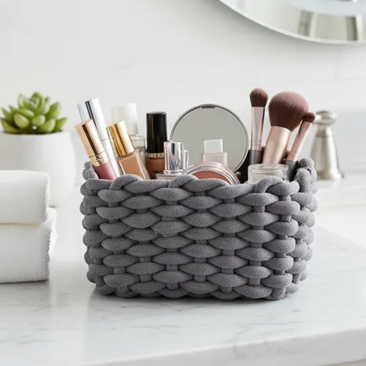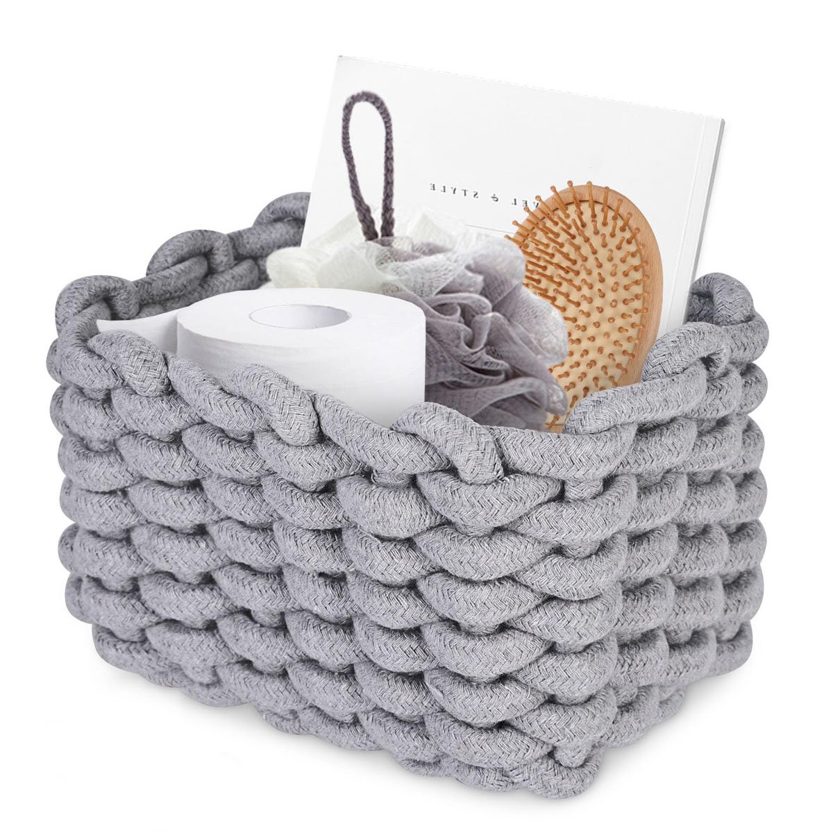 CESTA DE ALMACENAMIENTO TEJIDAS EN ALGODÓN GRIS 28 x 25 x 17 CM