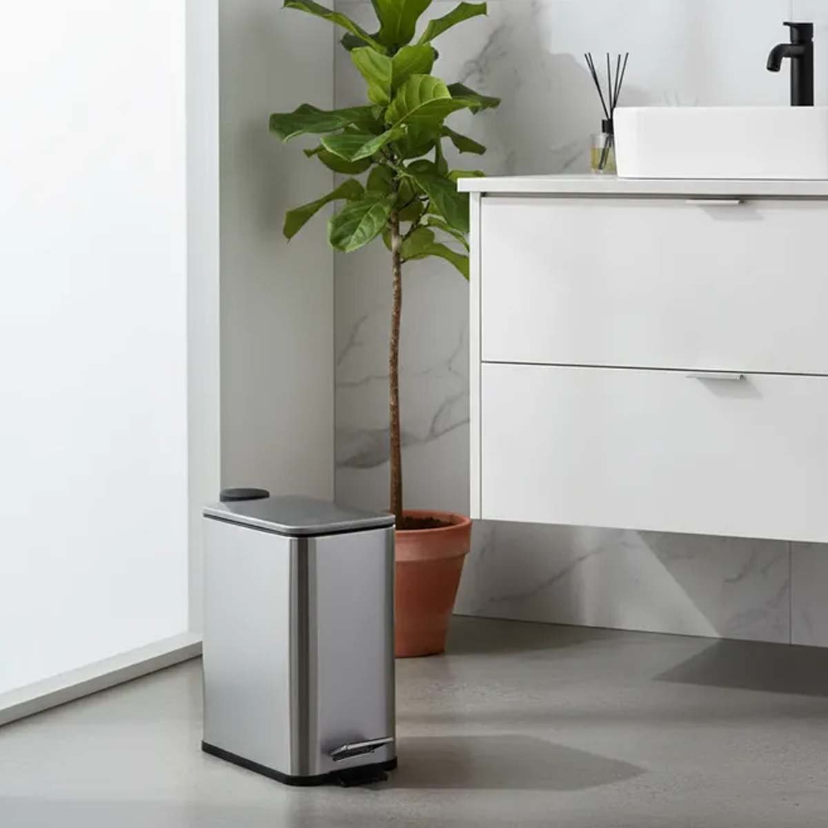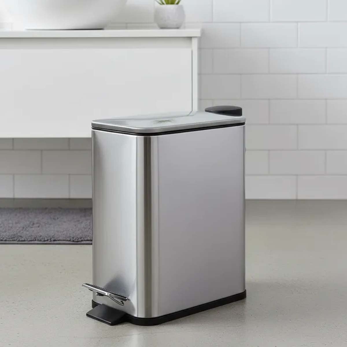 Tacho de basura de 5 litros, ideal para mantener tus espacios limpios y ordenados. Fabricado en acero inoxidable, combina estilo y funcionalidad. Su mecanismo a pedal permite una apertura práctica y sin contacto.
