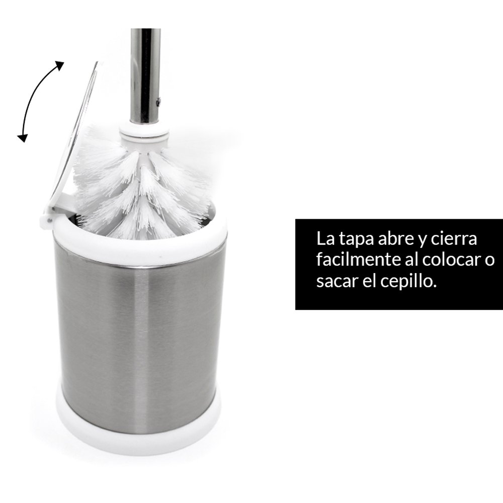 Cepillo de inodoro con diseño funcional y elegante. Al levantarlo, la tapa del soporte se abre automáticamente y se cierra al colocarlo de nuevo, manteniéndolo oculto e higiénico. Su estilo moderno en colores neutros se adapta a cualquier baño, aportando un toque decorativo. La base pesada evita vuelcos y derrames, garantizando estabilidad y limpieza. Compacto y ahorrador de espacio, es ideal para hogares, oficinas o comercios, permitiendo un almacenamiento discreto en rincones o detrás del inodoro. Una solución eficiente y práctica para la limpieza diaria del baño.