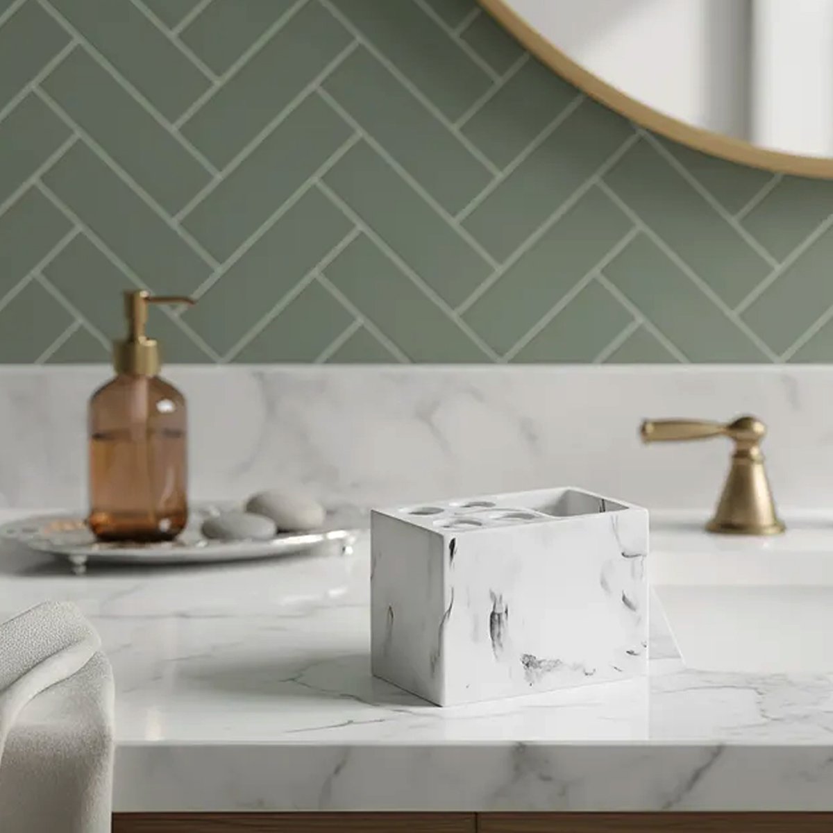 PORTA CEPILLO RESINA MÁRMOL BLANCO