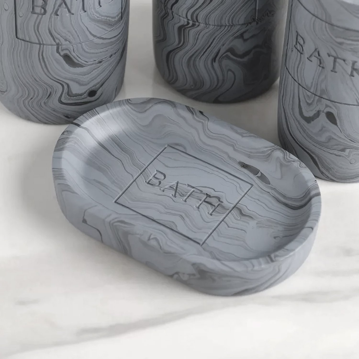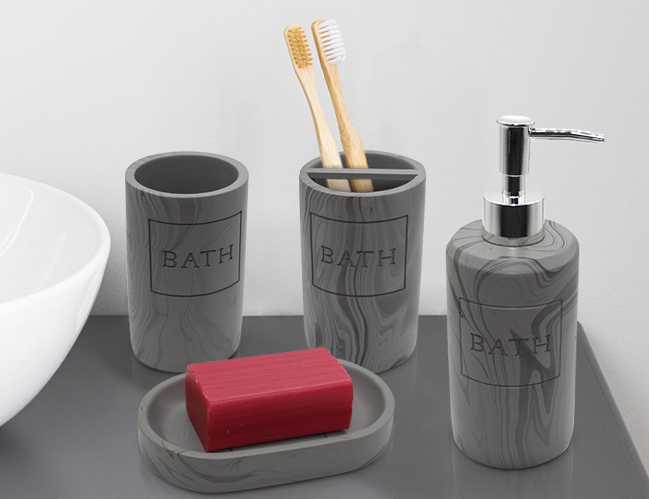 SET DE BAÑO RESINA 4 PIEZAS MÁRMOL GRIS
